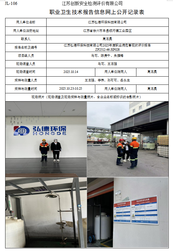 江苏弘德环保科技有限公司2025年度职业病危害现状评价报告
