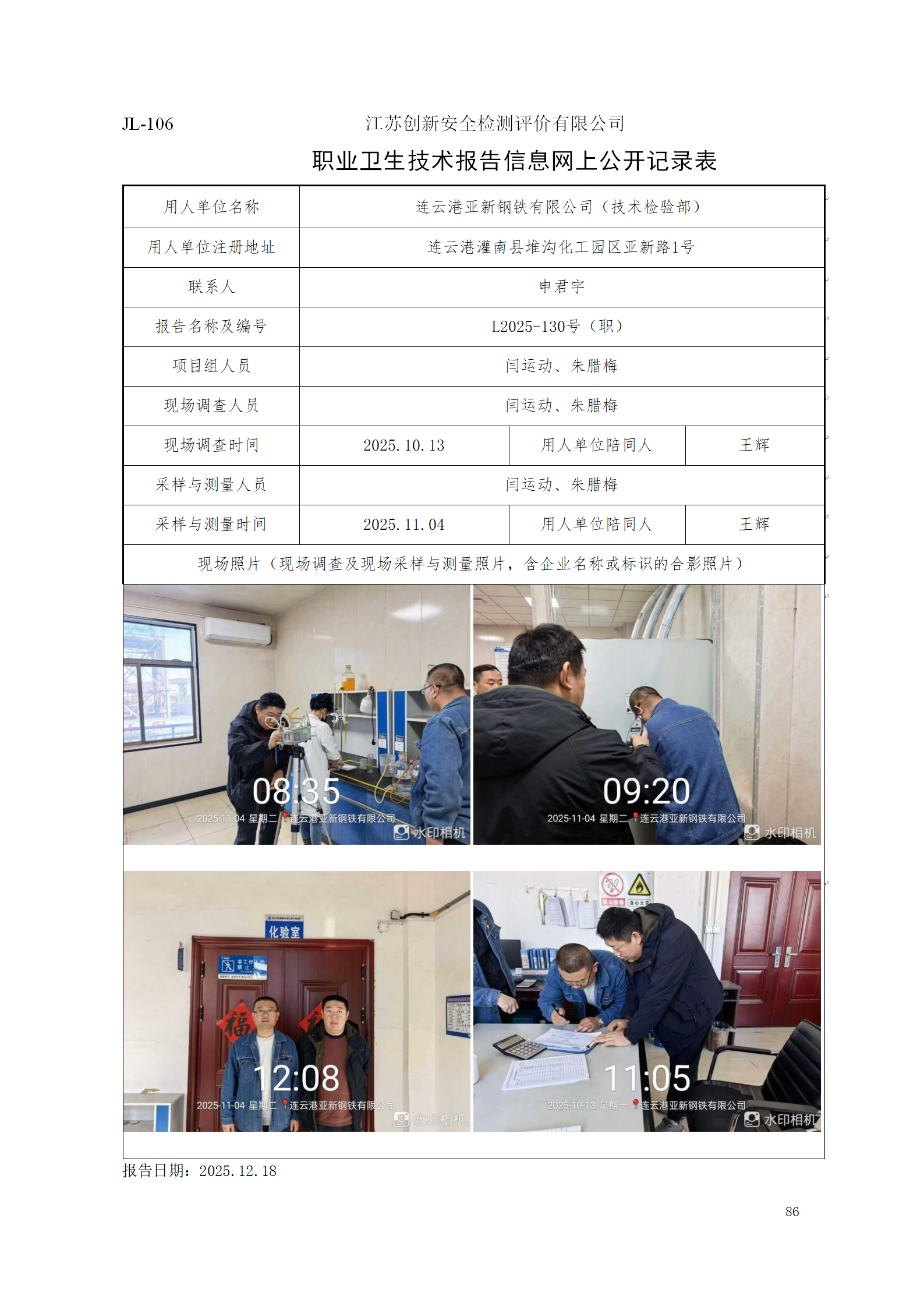 连云港亚新钢铁有限公司(技术检验部)定期检测项目公示