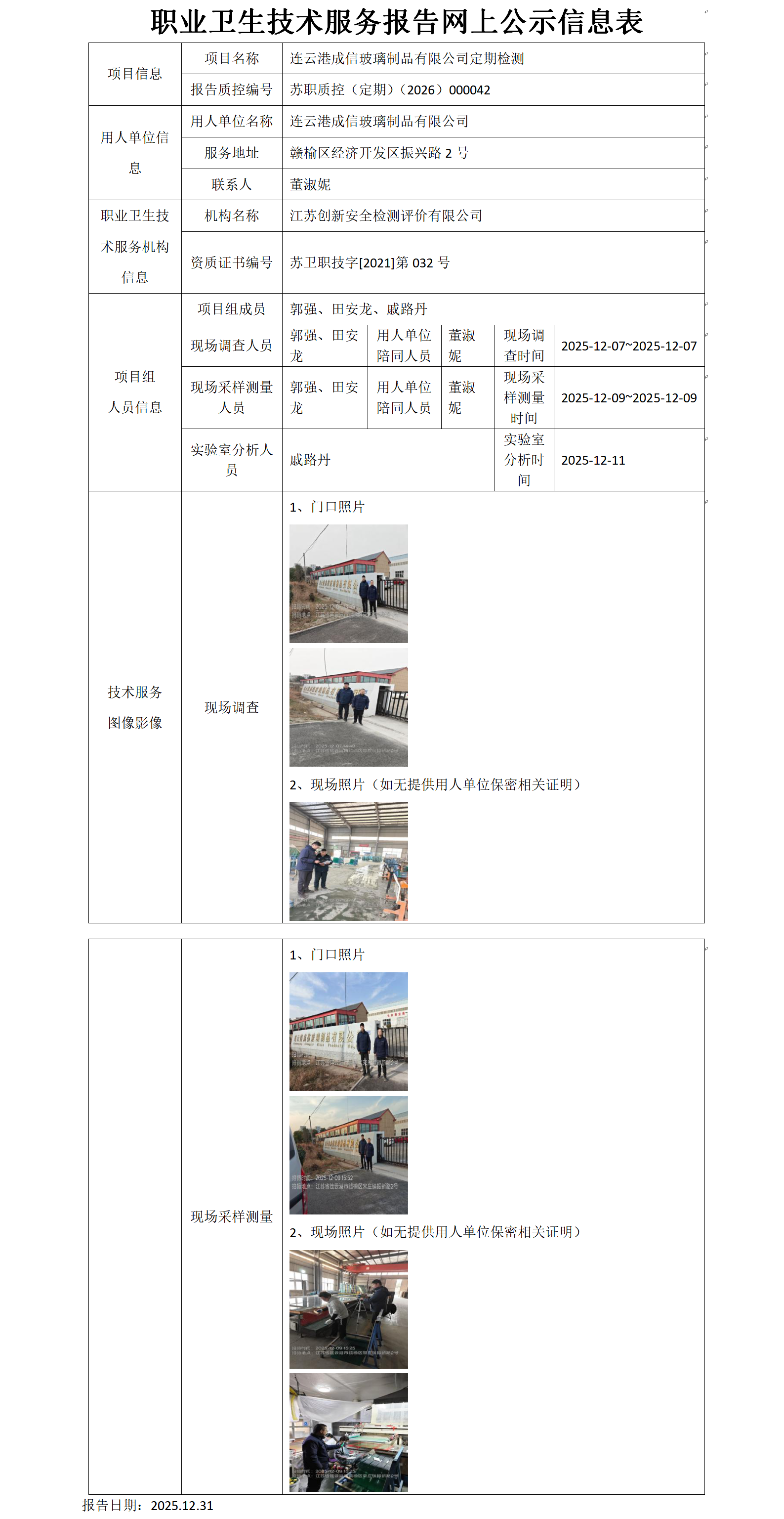 连云港成信玻璃制品有限公司定期检测项目公示