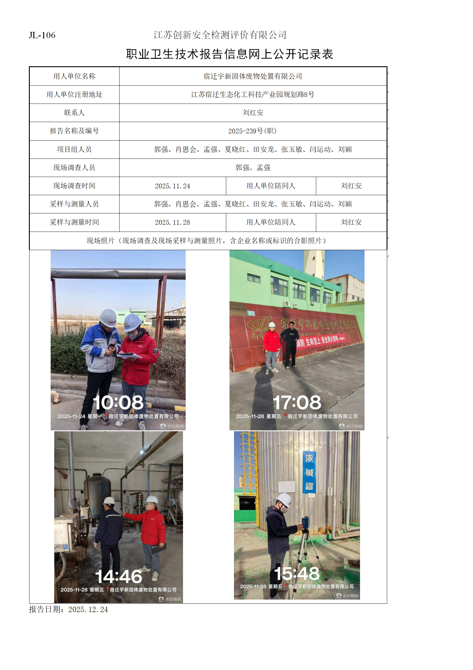 宿迁宇新固体废物处置有限公司职业卫生定期检测项目公示