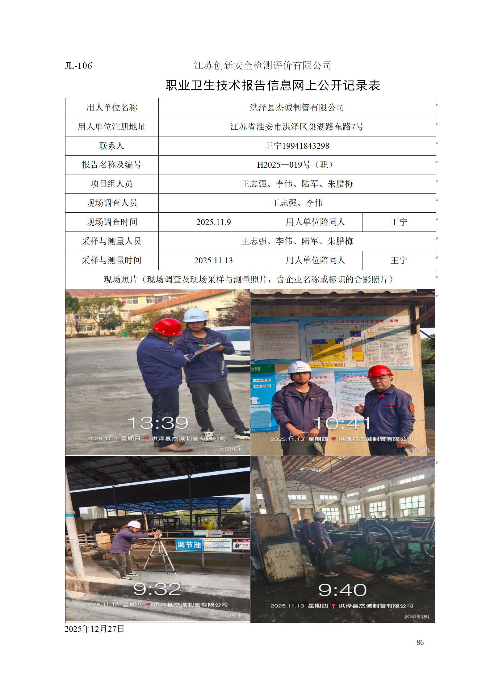 洪泽县杰诚制管有限公司定期检测项目公示