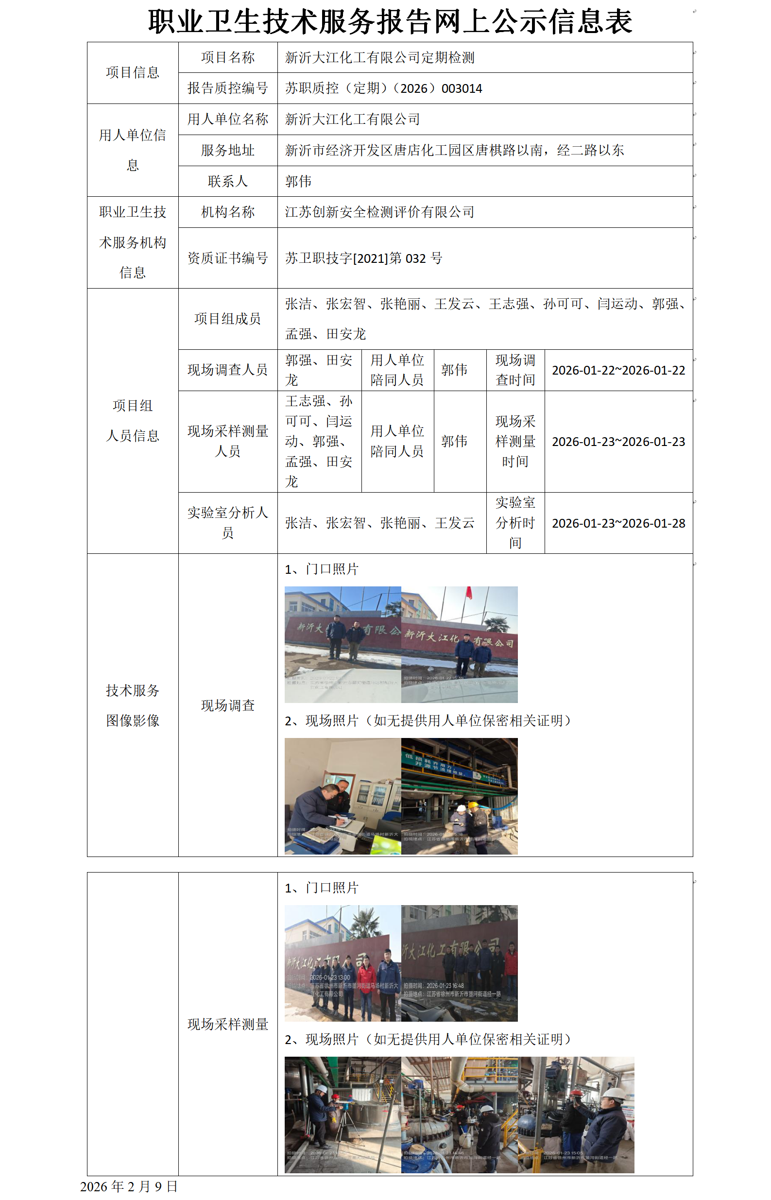 新沂大江化工有限公司定期检测
