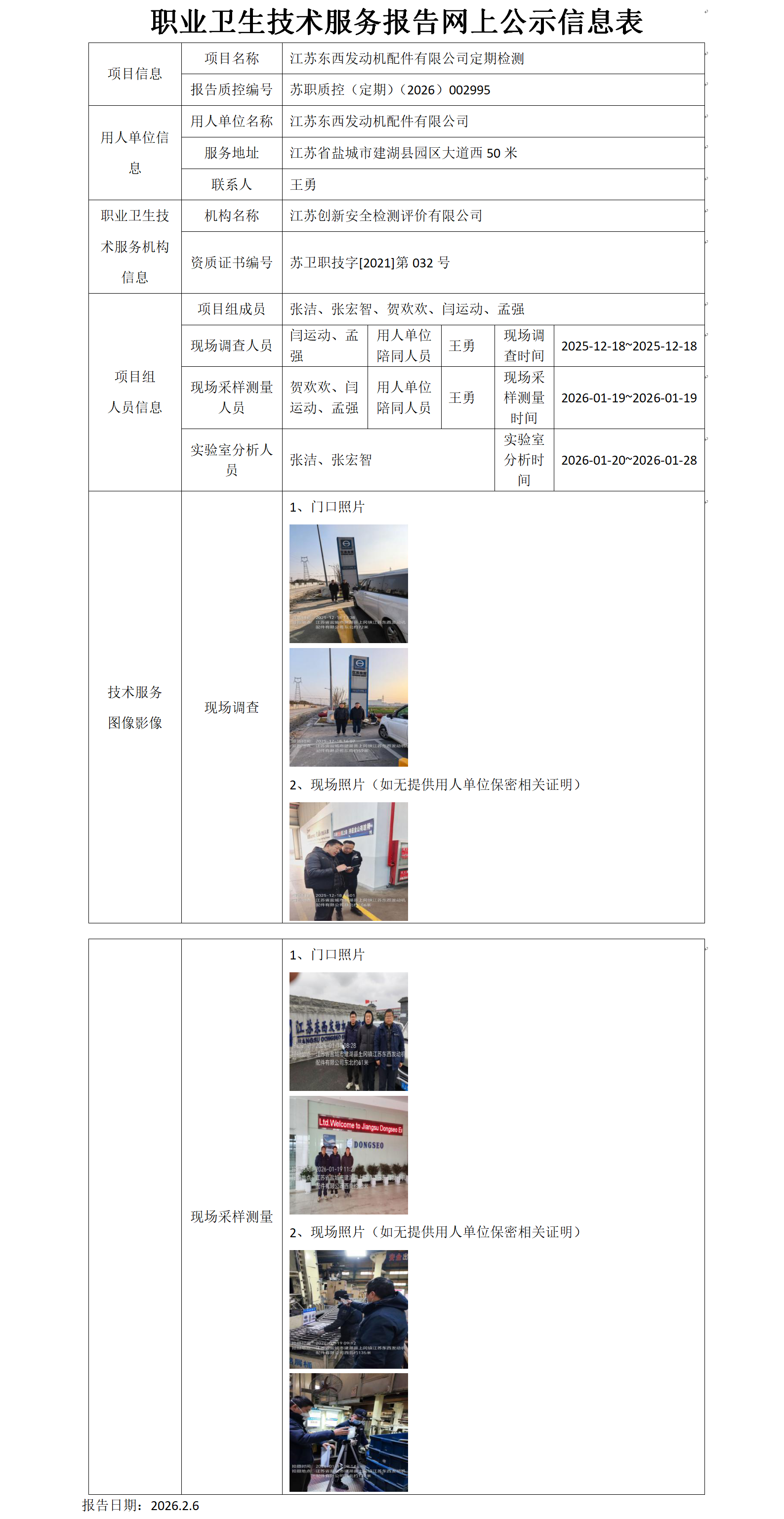徐州东星工程机械有限公司年产销轴100万件、油箱5.4万个及油管78万只项目(一期)职业病危害控制效果评价报告