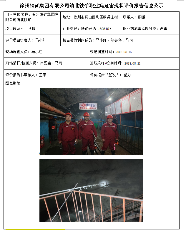 徐州铁矿集团有限公司镇北铁矿职业病危害现状评价报告信息公示